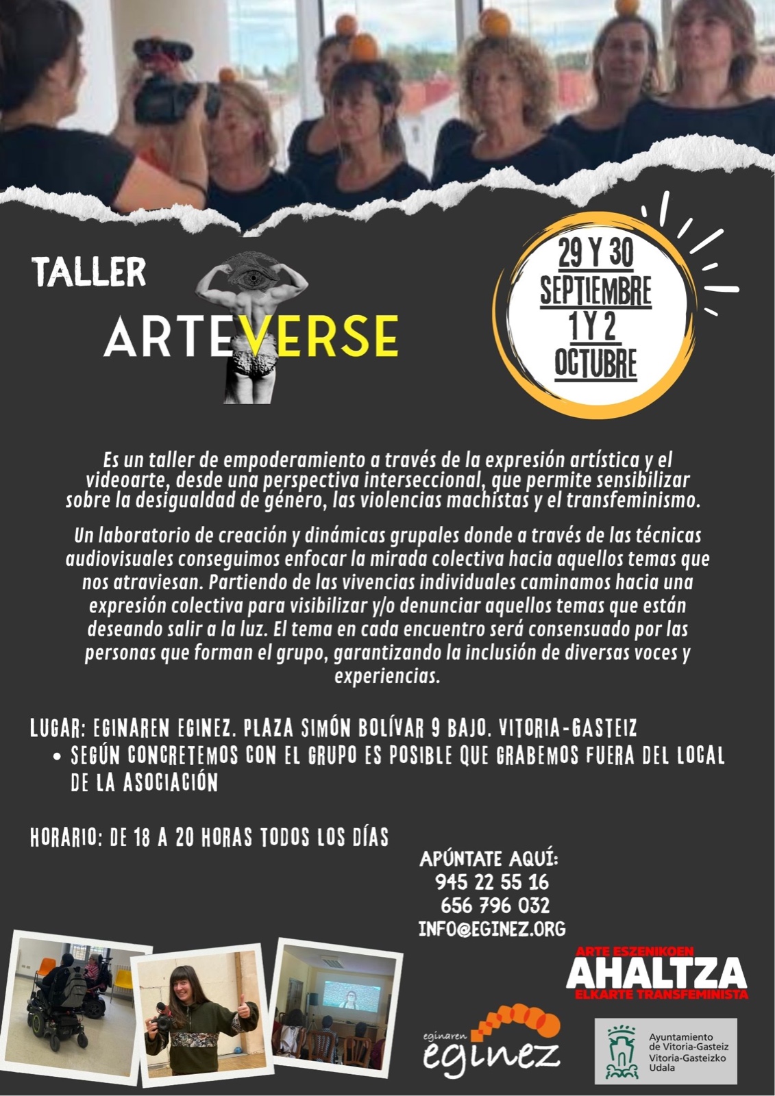 Anímate a participar en el taller ARTEVERSE, taller de empoderamiento a través de la expresión artística y el videoarte, desde una perspectiva intersectorial, para sensibilizar sobre la desigualdad de género, dirigido a mujeres y hombres.